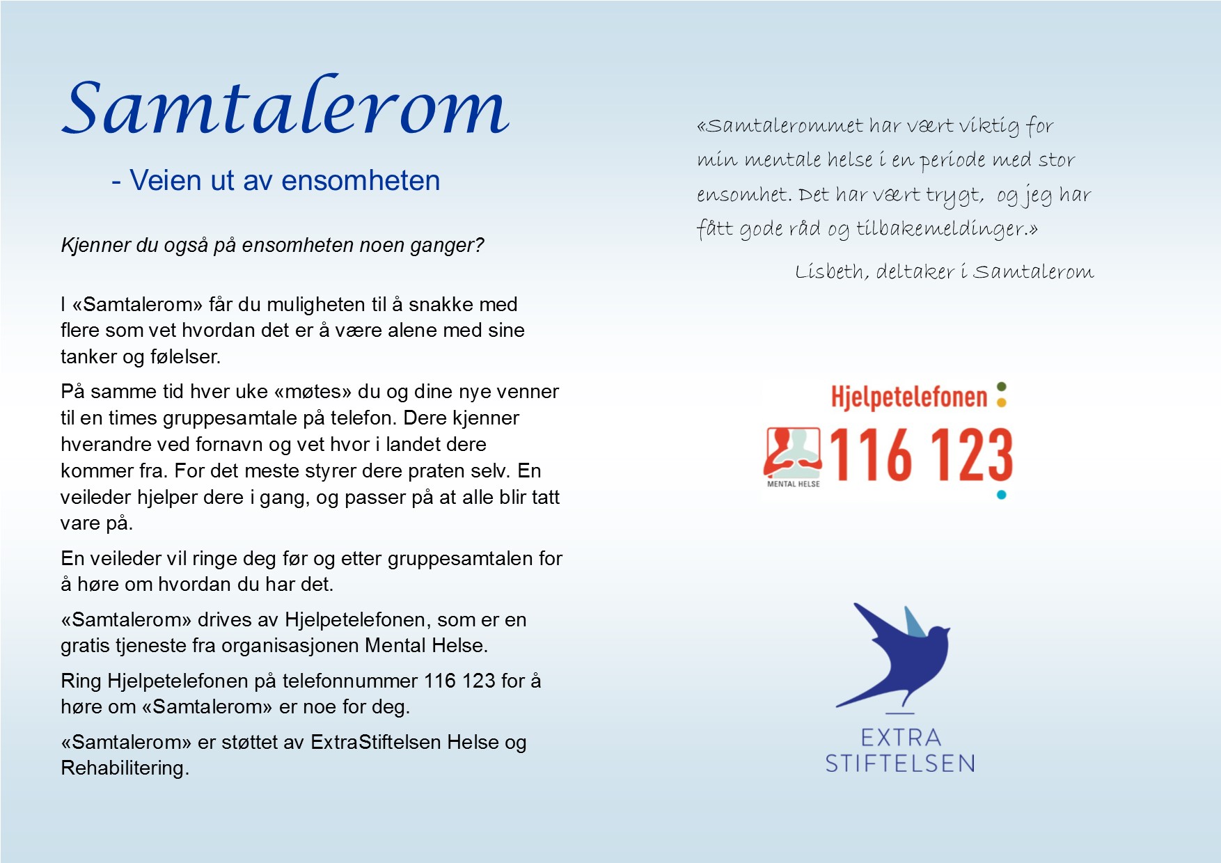 I halvannet år har Hjelpetelefonen drevet prosjektet «Samtalerom – veien ut av ensomheten».